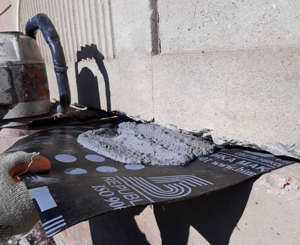 - Ugradnja certificirane hidroizolacije u usjek na koji smo nanijeli žbuku.
